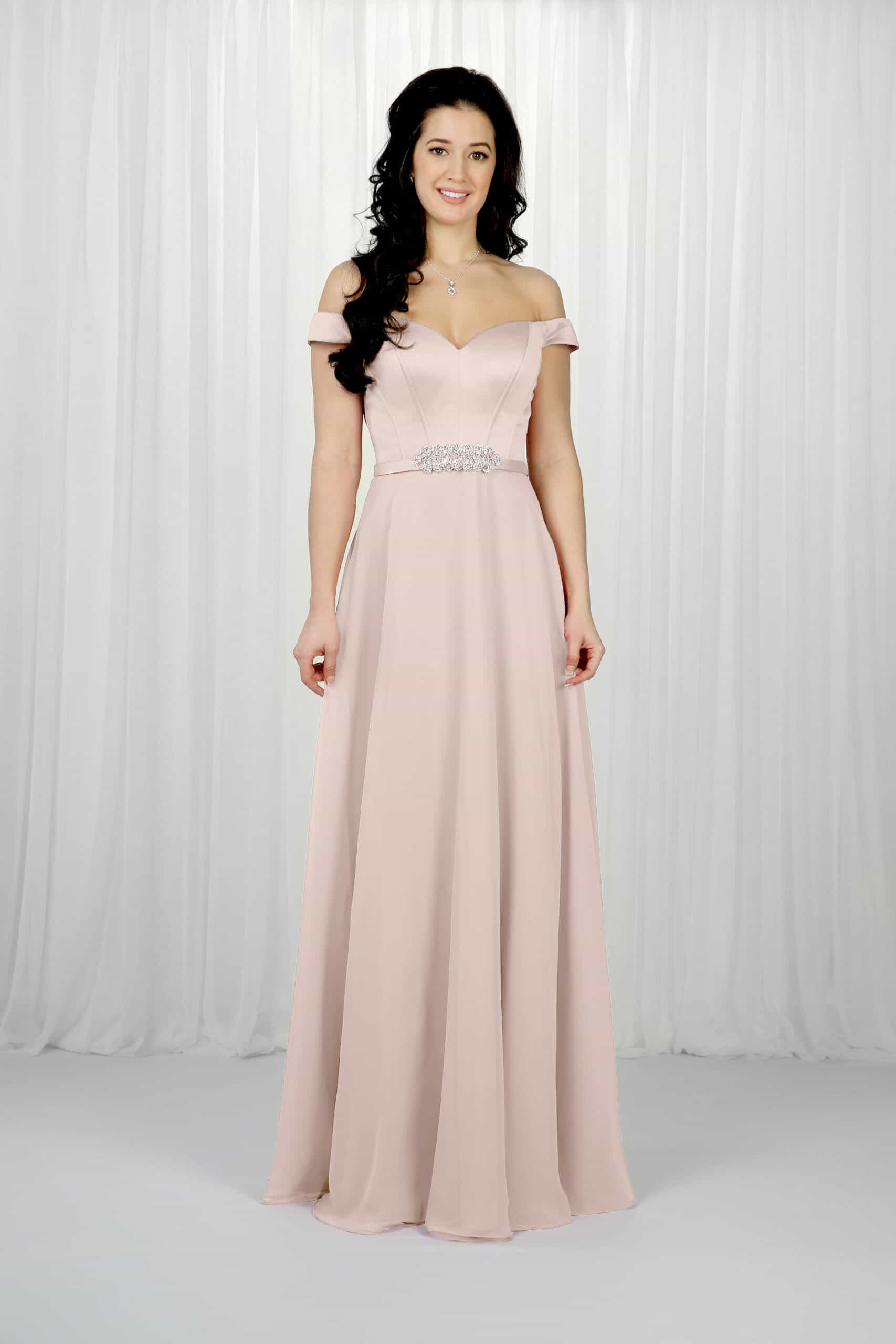 Classic Satin Dress with Pearl Waist Detail