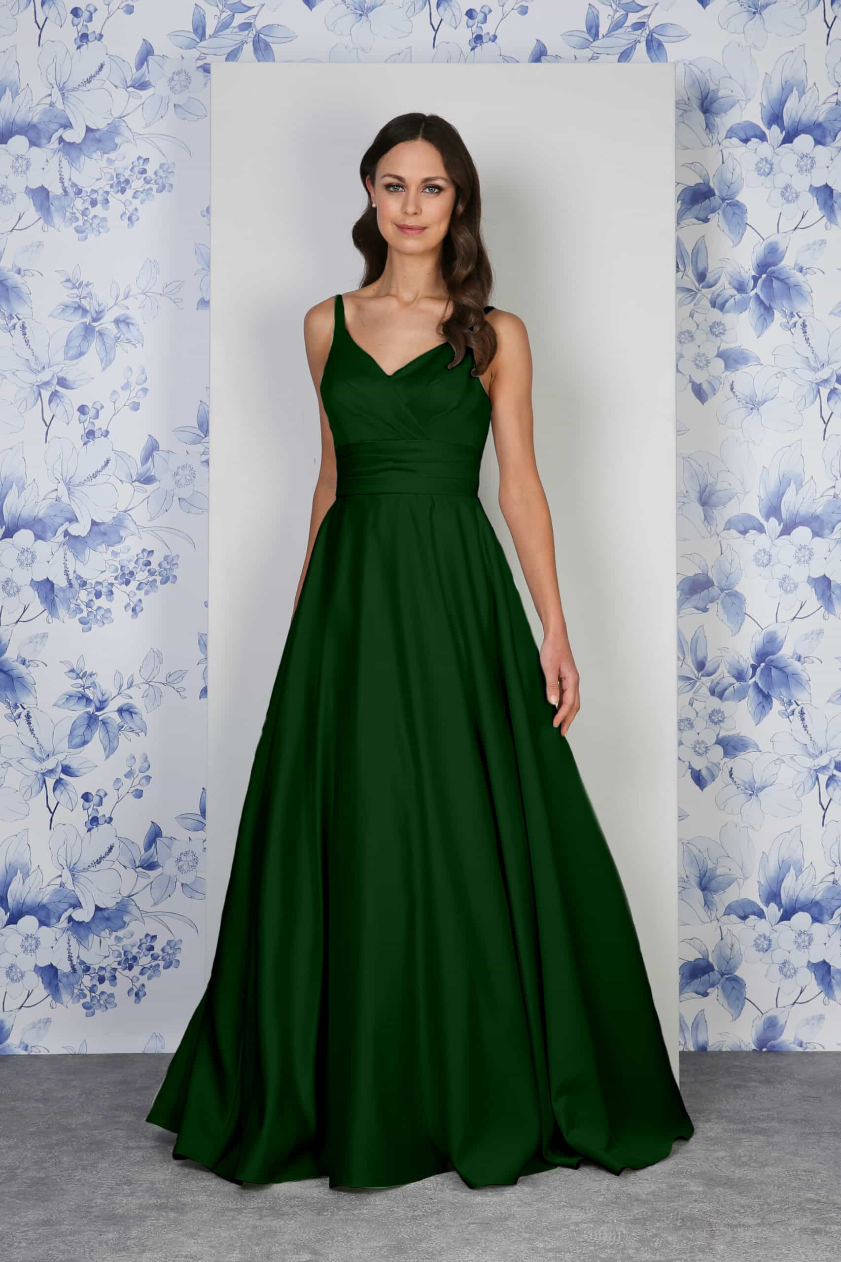 Spaghetti Strap Pleated Bodice Satin Ballgown | RDM1282
