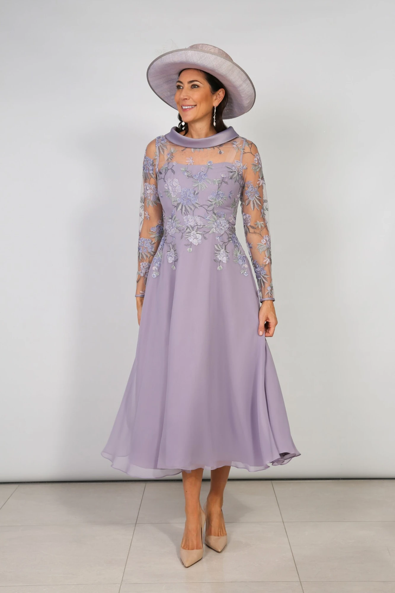 Richard Designs Encore Dress in Wisteria with Embroidered Bodice and Sleeves