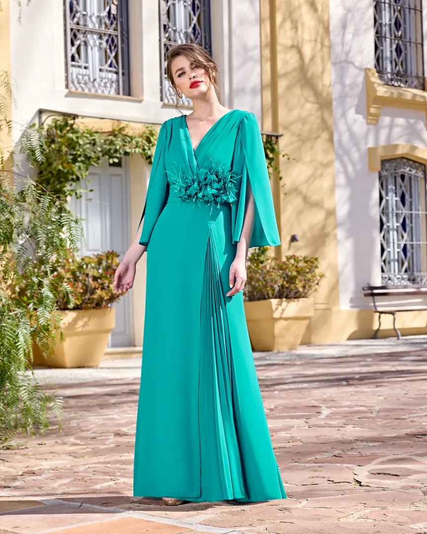 Turquoise Full Length Dress with Wrap Pleat Detail Skirt | Sonia Peña