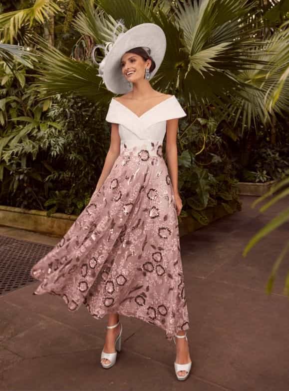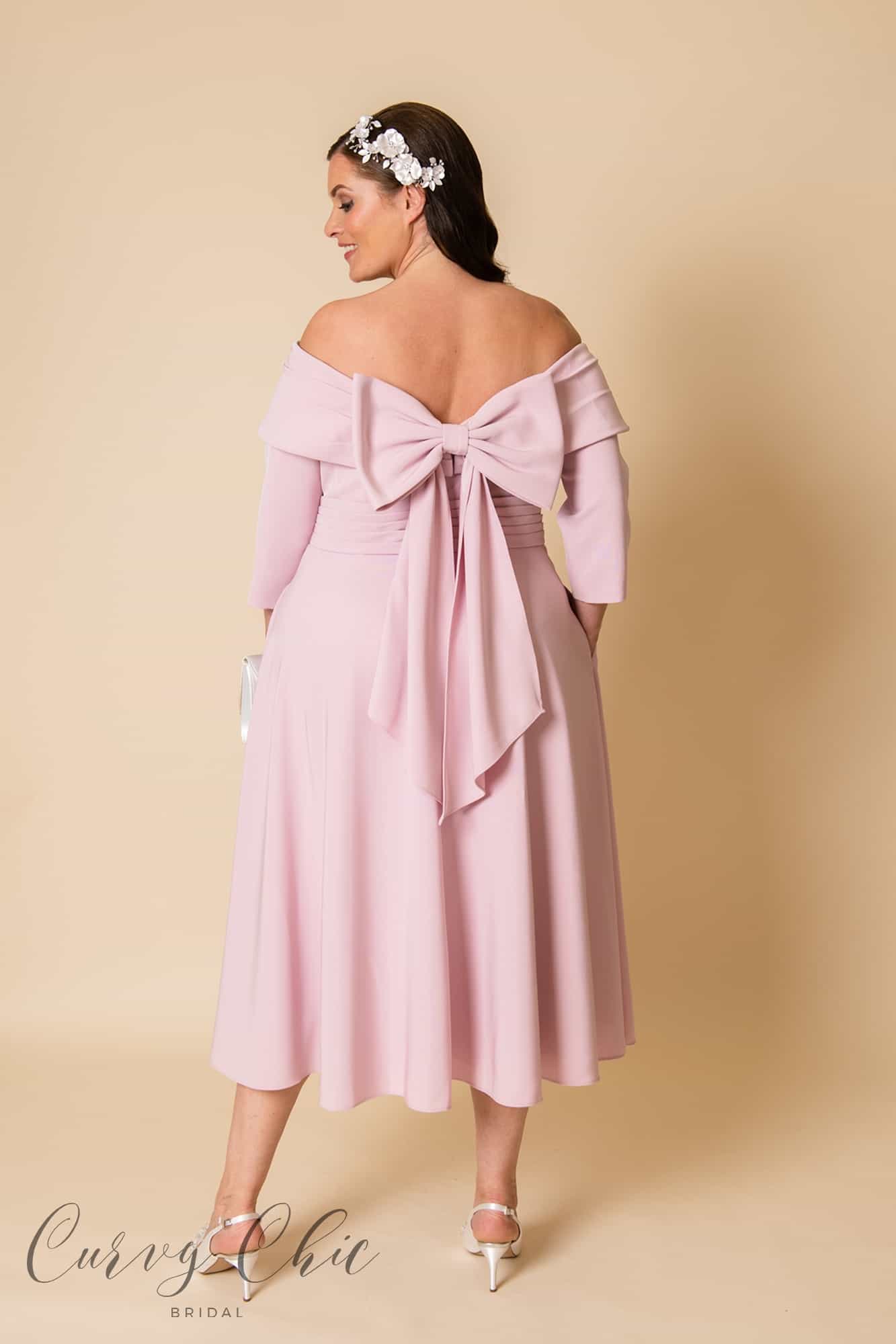 29668C-B | Off-shoulder midi dress in Blush Pink | Veni Infantino