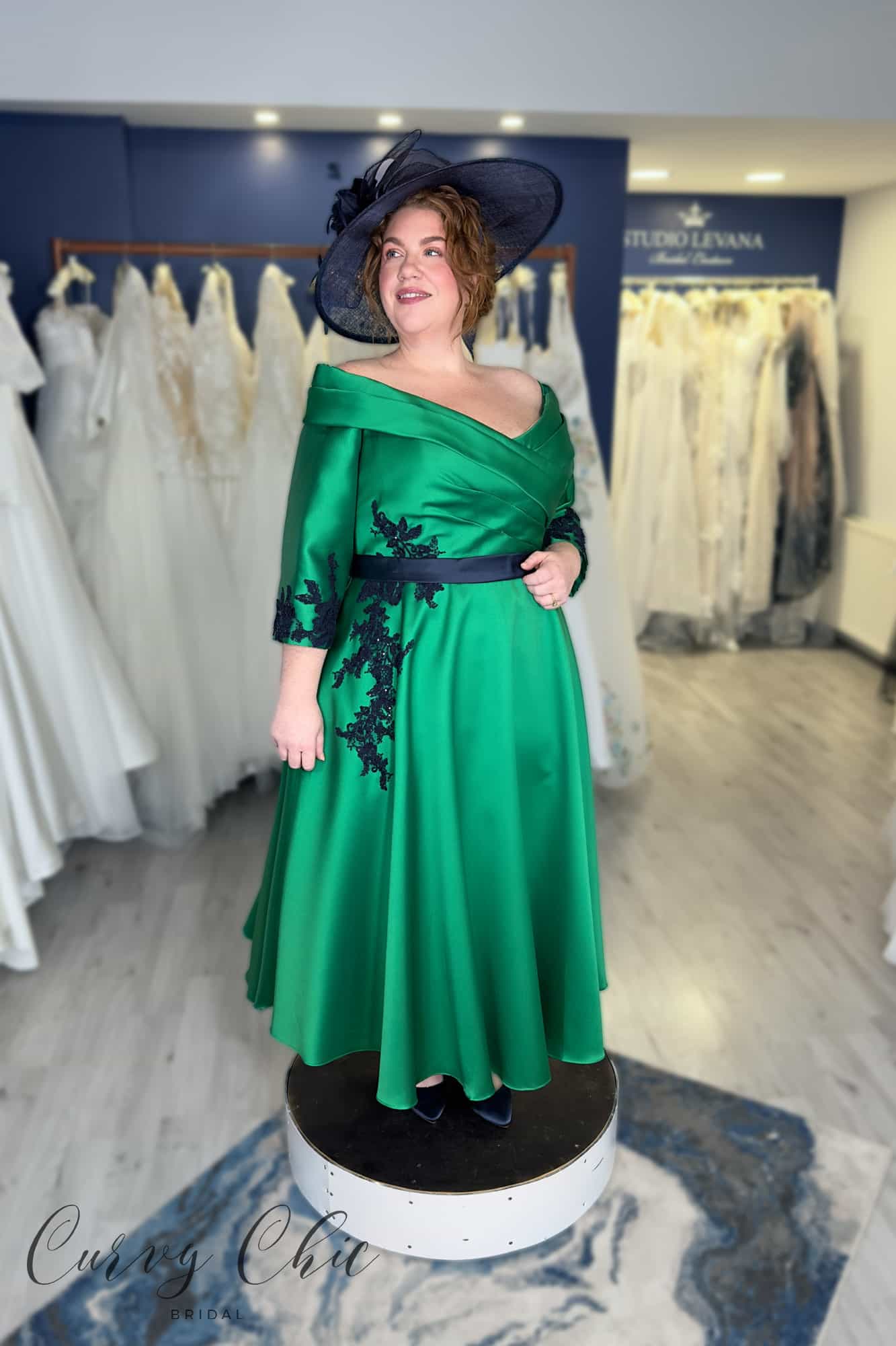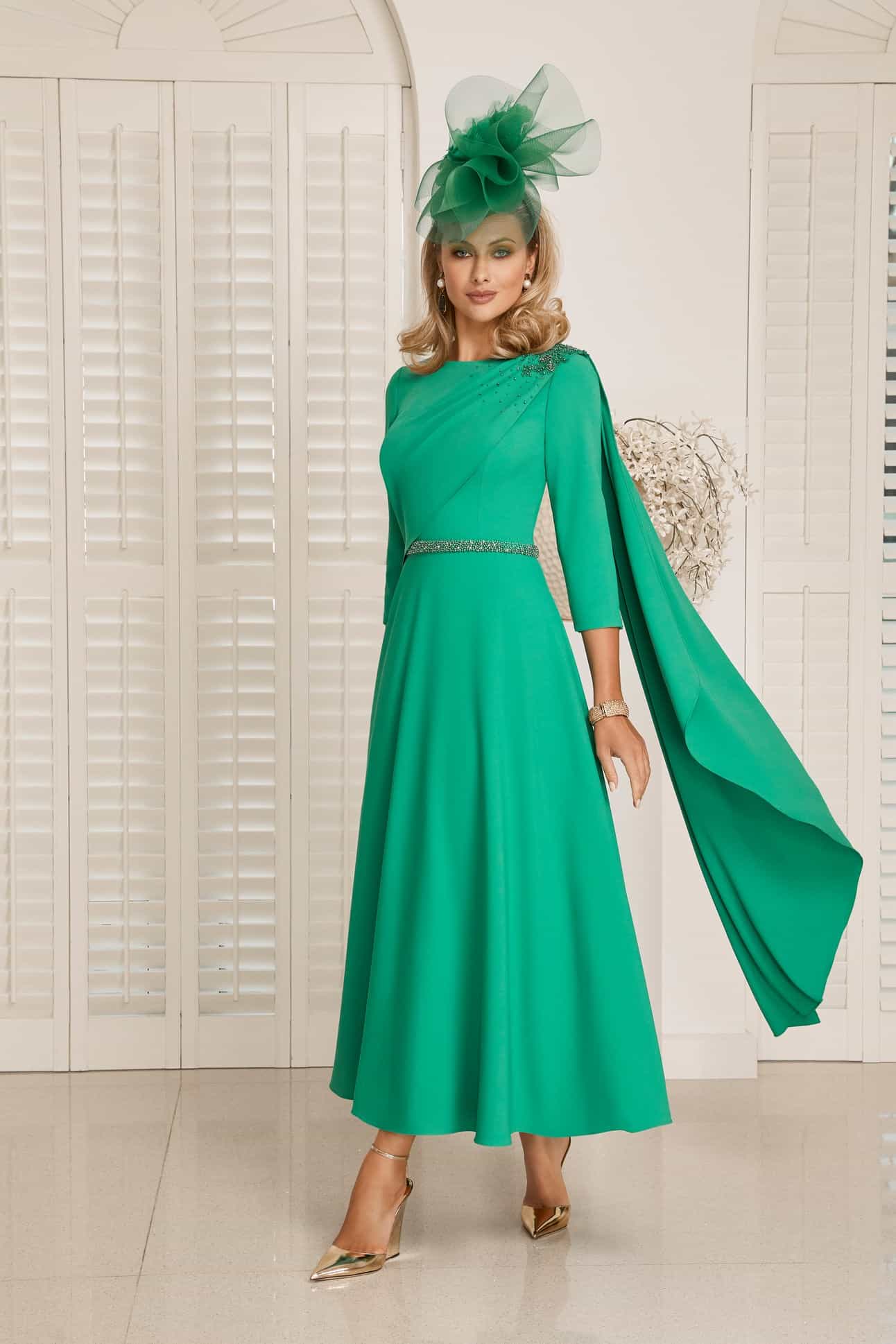 992210 | Full A-Line dress in Shamrock Green & Navy Veni Infantino
