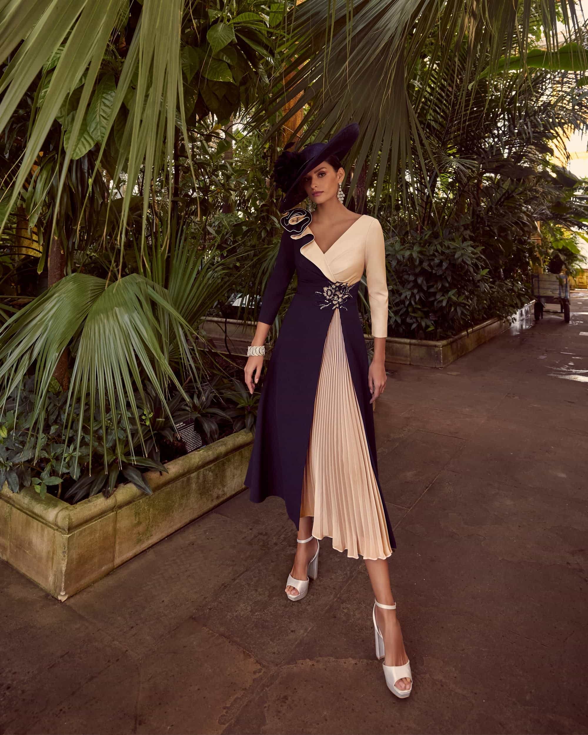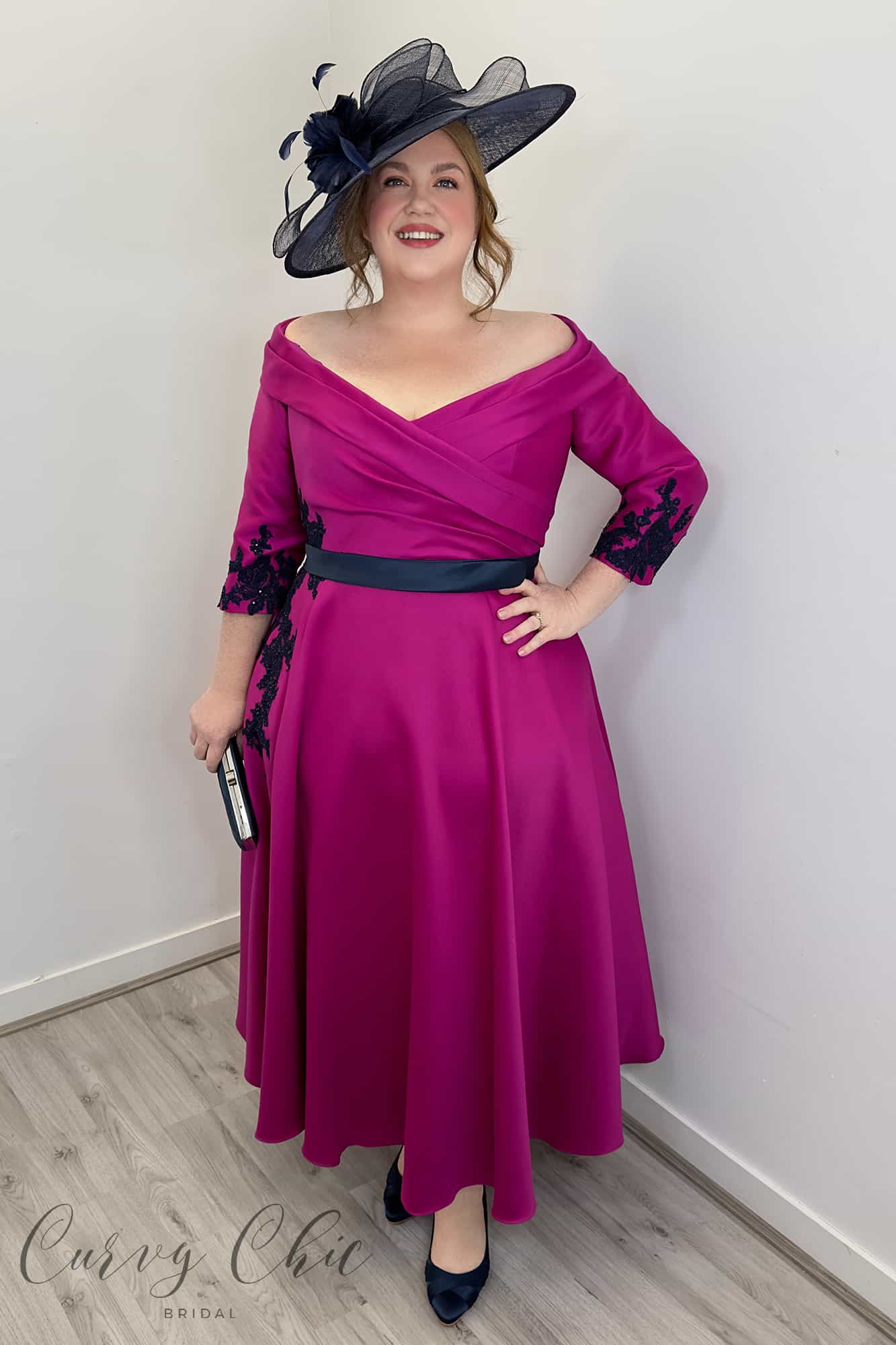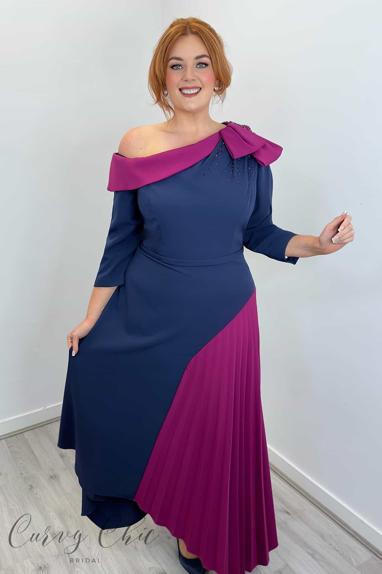992210 | Full A-Line dress in Magenta Pink & Navy Veni Infantino
