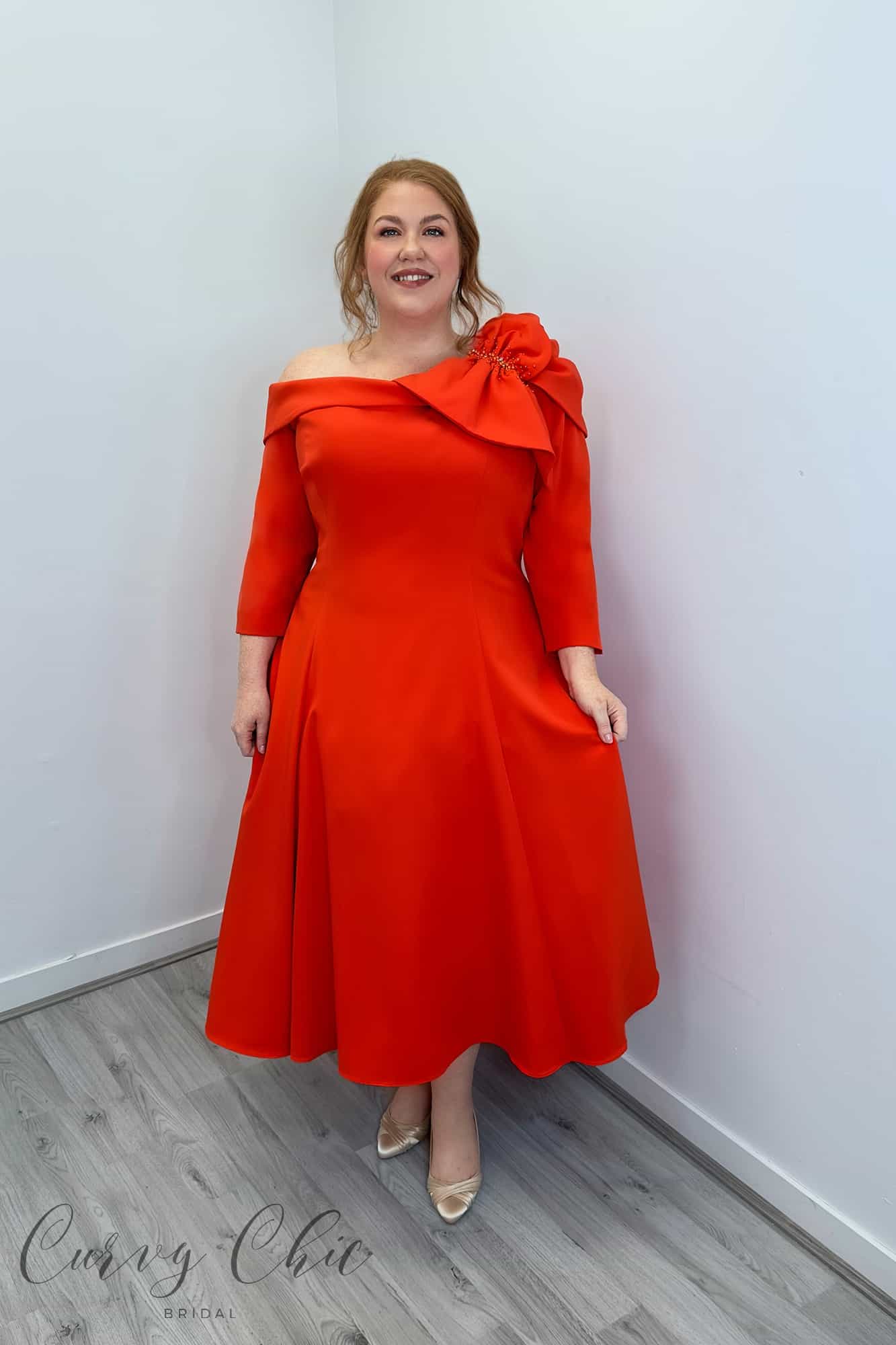 Veni Infantino A-Line One Shoulder Midi Dress in Burnt Orange | 992308